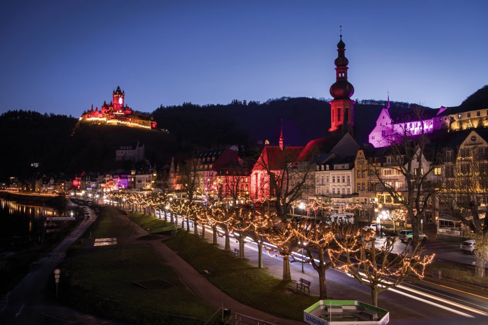 Anreise in die Mosel-Stadt Traben-Trarbach. Geführter Spaziergang durch die bezaubernde Wein- und Doppelstadt. Nach dem Check-in im Hotel haben Sie ausreichend Zeit für den Weihnachtsmarkt in der Traben-Trarbacher „Unterwelt“. Tauchen Sie ein in eine stimmungsvolle und mystische Atmosphäre der traditionellen ehemaligen Weinkeller der Stadt. Lassen Sie sich von den romantisch ausgeleuchteten Räumen bezaubern und entdecken Sie die vielfältig angebotenen Weihnachtsleckereien.
