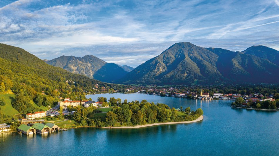 Am sonnigen Südufer des Sees liegt Rottach-Egern mit der Seilschwebebahn auf den Wallberg und kilometerlanger Promenade.