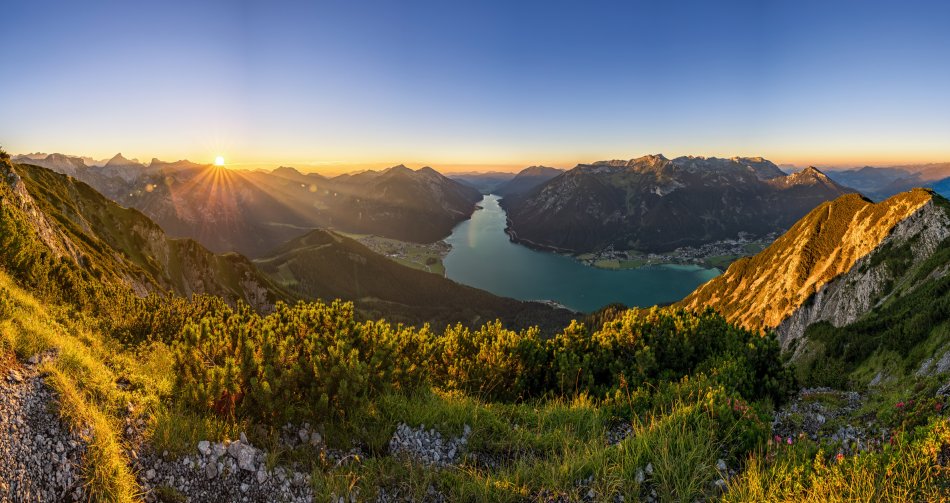 …bietet Ihnen neben einer Vielzahl von Sport- und Unterhaltungsmöglichkeiten auch das immer seltener werdende Erlebnis, in unberührter Natur und reiner Luft das Leben zu genießen. Der Achensee ist mit 719 ha der größte See Tirols. Zu den Sehenswürdigkeiten zählt sicher die Pfarrkirche, vom Turm erklingt jeden Tag um 12 Uhr und um 18 Uhr das „Ave Maria“. Die Wandergebiete Rofan und Karwendel und die herrliche Landschaft erfüllen jeden Traum.