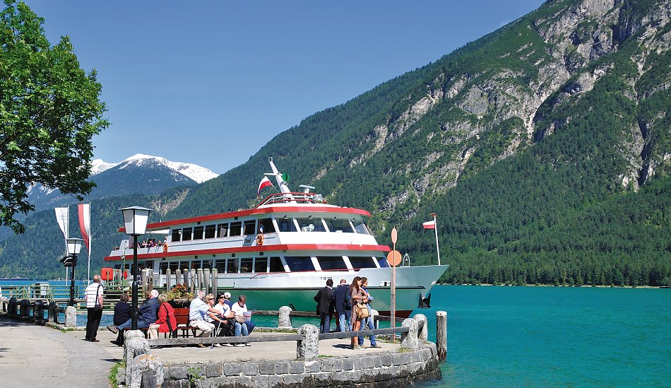 …bietet Ihnen neben einer Vielzahl von Sport- und Unterhaltungsmöglichkeiten auch das immer seltener werdende Erlebnis, in unberührter Natur und reiner Luft das Leben zu genießen. Der Achensee ist mit 719 ha der größte See Tirols. Zu den Sehenswürdigkeiten zählt sicher die Pfarrkirche, vom Turm erklingt jeden Tag um 12 Uhr und um 18 Uhr das „Ave Maria“. Die Wandergebiete Rofan und Karwendel und die herrliche Landschaft erfüllen jeden Traum.