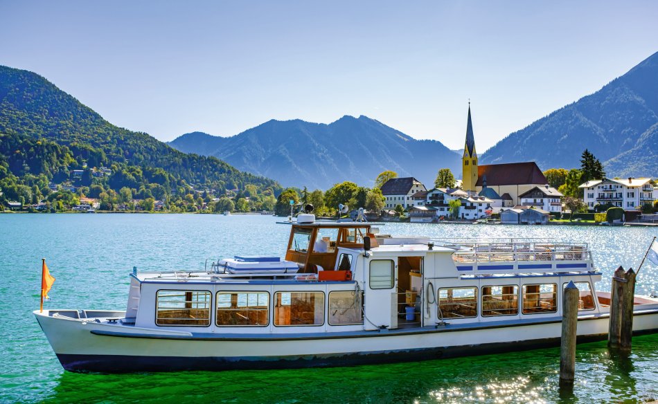 Am sonnigen Südufer des Sees liegt Rottach-Egern mit der Seilschwebebahn auf den Wallberg und kilometerlanger Promenade.