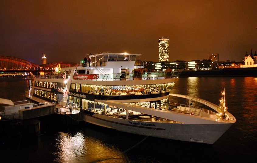 An Bord unseres komfortablen Schiffes genießen Sie eine stimmungsvolle Adventsfahrt vorbei am winterlichen Düsseldorf. Funkelnde Lichter, weihnachtliche Atmosphäre und ein Rundum-sorglos-Paket mit all-inclusive-Gastronomie machen diesen Ausflug zu einem ganz besonderen Erlebnis. Lehnen Sie sich zurück, lassen Sie sich kulinarisch verwöhnen und genießen Sie die festliche Stimmung auf dem Rhein – ein Adventsgenuss für alle Sinne!